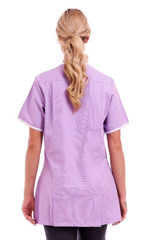 Women's Poly Cotton Asymmetric V Neckline Tunic for Nurses and Care Homes | Size S to XL | FUL04 Purple